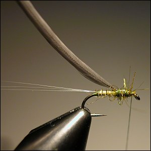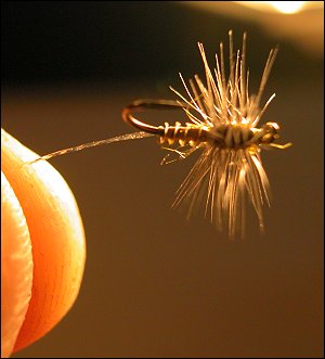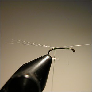 One secret to making the BWO ride flush in the surface film is to raise the tail just slightly from the plane of the hook shank. Do this by building up a slight thread bump at the tail above the hook barb. It helps to flatten the thread slightly by twirling the bobbin counter-clockwise to undo the natural twist in tying thread.